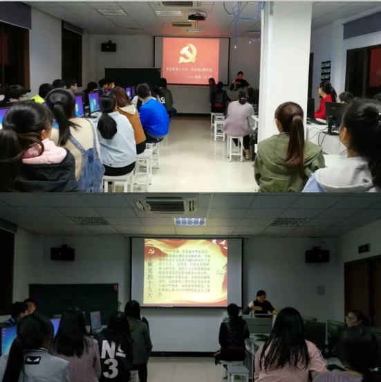 18日上午,在系党总支的组织下,软件工程系全体师生已经通过各种方式观看了十九大开幕会。各班团支部根据习总书记十九大报告精神,认真制定了主题团日活动的方案。走进2017级计算机网络技术班,团支书正在用PPT向班级同学们展示了党从成立以来,一路的发展历程以及我国所取得的伟大成就,让同学们为十九大的胜利召开感到深深的自豪。随后,团员们围绕团日主题,展开了热烈的讨论,结合自身成长发展经历,畅谈学习收获和体会。团员青年们纷纷表示,要提高自身的政治素养,认真学习党的十九大会议精神,不断掌握新知识,积累新经验,增强新本领,以饱满的学习热情、积极的学习态度投入到学习生活当中。最后,全体团员起立,奏唱团歌,在团歌声中,本次团日活动圆满结束。