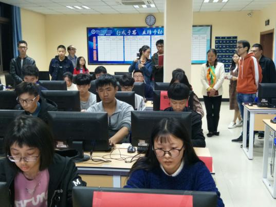 本网讯 为进一步丰富大学生的校园文化生活,提高学生的专业学习兴趣, 10月23日晚,软件工程系互联网+ 特色班针对大一新生组织了一场主题为“运指如飞”的打字比赛活动。出席本次比赛活动的有系党总支副书记王莉娟、副主任陈向东、辅导员李龙以及互联网+特色班的老师们。