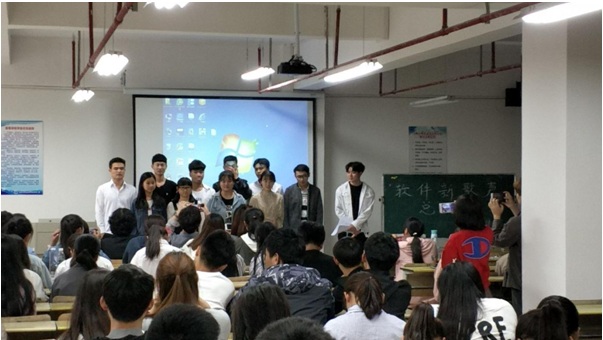 本网讯 近日,由秀山校区自律委员会主办的第一届“软件新歌声”大赛在秀山校区举办。软件工程系党总支副书记王莉娟、团总支书记曾甜、辅导员老师李龙、张申羽、公寓管理老师宋启慧、联络办老师胡军出席了本次比赛,并与35名学生大众评审一起担任本次比赛的评委。
