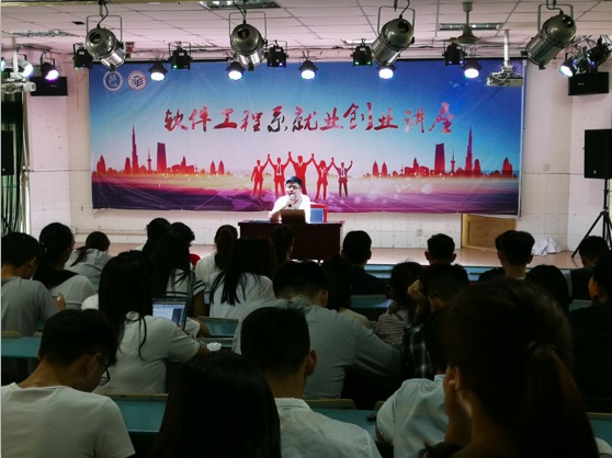 本网讯 为了引导系部学生树立正确的就业观念,激发学生的就创业热情,提高学生的就业创业能力,软件工程系于5月27日上午在校阶梯教室开展了就业创业讲座——我请学长进校园。本次讲座的主讲人为2007级计算机网络技术班王磊,软件工程系党总支副书记王莉娟、本部大一、大二学生参加了本次讲座。讲座由系团总支书记曾甜主持。