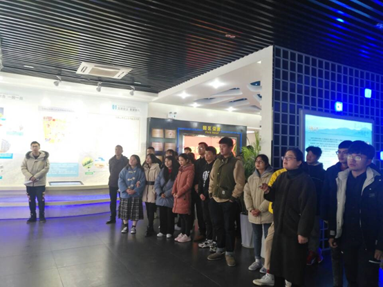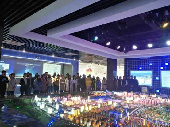 园区谷主任带领同学们参观软件园展厅,给同学们介绍了马鞍山市软件园的发展历程,五大主导产业,产值超亿企业,发展特色及规划。