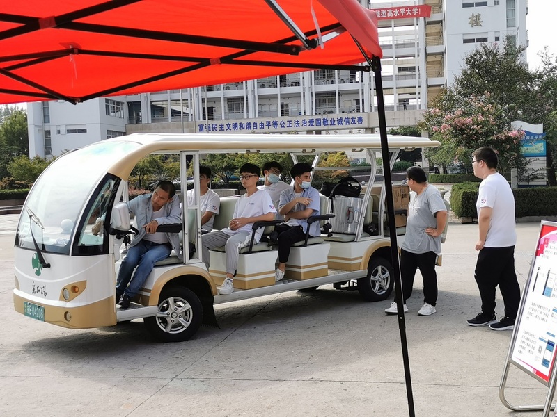 为方便新生搬运行李,学校安排多辆观览车点对点送到新生所在公寓楼,帮助新生搬运行李,并派志愿者将学生们的大件行李搬送至寝室,学校公寓楼也安排了专门的志愿者老师量体温,宿舍登记,让新生更加快速地融入我们的大家庭。