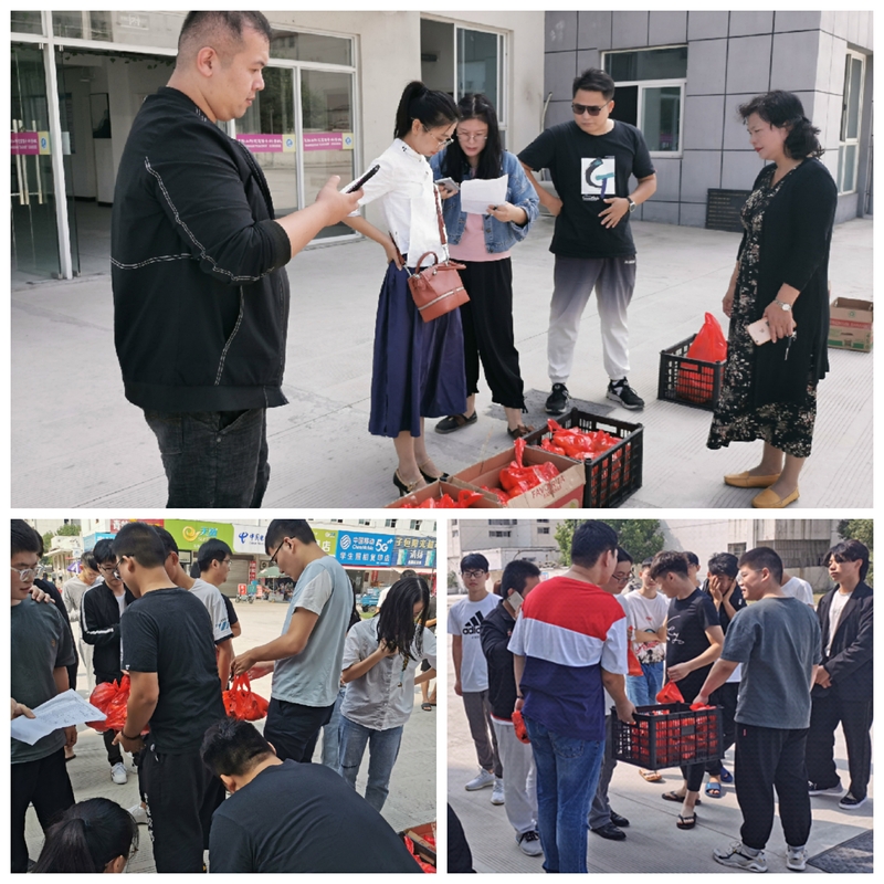 随着系领导和辅导员老师们的到来,双节慰问活动拉开了序幕。按照辅导员老师通知的时间,在校的同学们陆陆续续来到9号公寓门前集合,排队有序领取系部为每一位同学准备的双节慰问品。王莉娟书记向同学们送上了节日的祝福并与在校的学生进行了亲切的交谈,她关切地询问同学们的学习和生活情况,并鼓励同学们要好好学习。王书记还特别询问了系部专升本新生的适应情况。最后,王书记给予同学们温馨提示:留校的同学一定要提高安全防范意识,注意各项安全。正所谓“每逢佳节倍思亲”,虽然在校的同学们非常思念亲人,但是系部的慰问让他们感受到了家人般的温暖。同学们纷纷表示,一定会以学校领导老师的关心作为动力,好好学习,用优秀的成绩回报学校、社会。