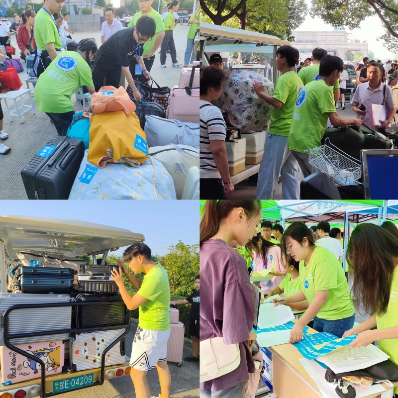 早上六点三十分,迎新工作正式拉开序幕。随着载着新生们的大巴车一辆一辆到来,怀抱梦想的莘莘学子陆陆续续来到学校,志愿者们分工明确、有条不紊地迎接新同学。他们从新生手中拎过一件件行李,一趟趟来回穿梭在人群中,志愿者的一声问候、一个微笑、一次讲解,点点滴滴汇聚了他们的热情与期待,从校门口到学生公寓都记录着他们忙碌的身影,志愿者们为陆续到来的新生有序提供接待引导、行李搬运、入学流程等服务,整个流程顺畅高效、井然有序。