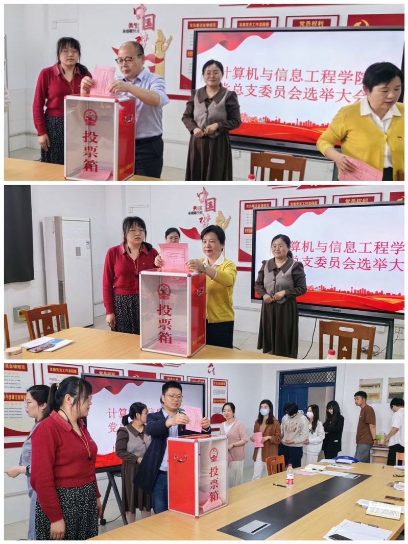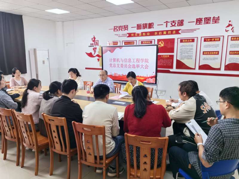 计算机与信息工程学院党总支委员会选举大会于4月24日下午在行知楼604党员活动室成功举行。校党委委员、副校长周志亮、学院党总支书记王莉娟出席会议,学院全体党员师生参加了本次会议。