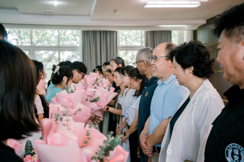 毕业典礼最后环节,由学生代表向老师们献上鲜花,表达了对老师的感谢之情。