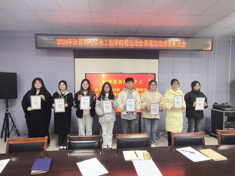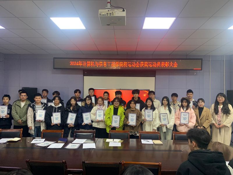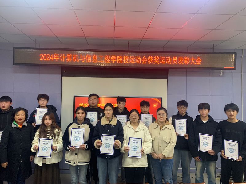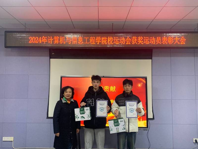 11月27日,计算机与信息工程学院在行知楼601举行2024年校运动会获奖运动员表彰大会。师生齐聚一堂,共同见证这一荣耀时刻。本次大会的宗旨在于对在田径赛事中表现出色的运动员,以及在赛事背后默默奉献的相关工作人员进行表彰。学院党总支书记王莉娟、副书记曾甜、全体辅导员以及被表彰人员参加了本次大会。
