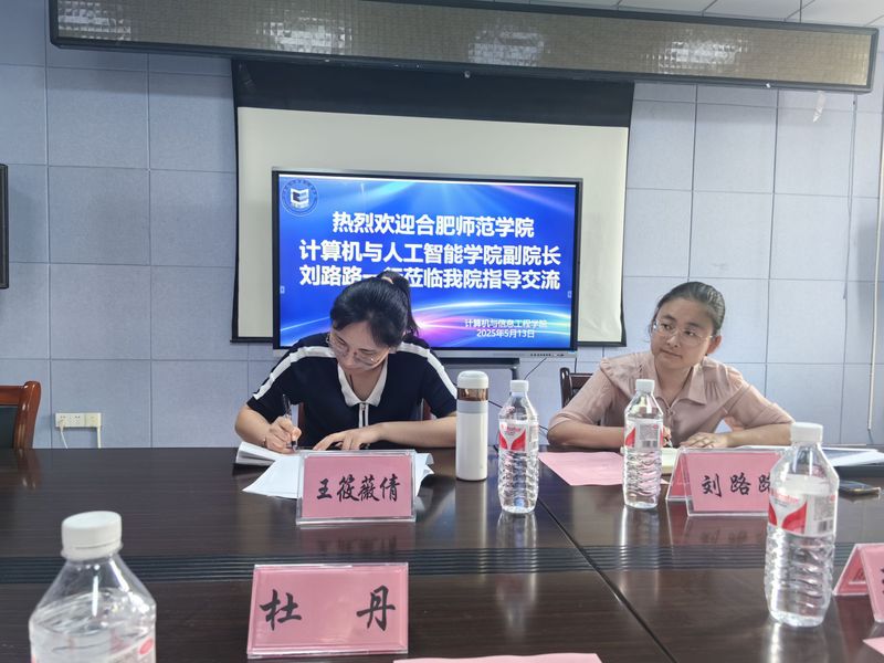 5月13日下午,合肥师范学院计算机与人工智能学院副院长刘路路、教师王筱薇倩一行前往计算机与信息工程学院交流座谈。计算机与信息工程学院党总书记王莉娟、副院长杜丹等出席座谈会,各教研室主任、本科班任课教师等参加。