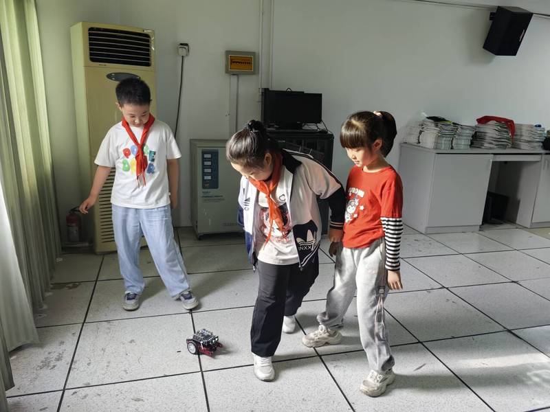 在课程中,师运用生动有趣的教学方法,将复杂的编程知识转化为简单易懂的案例。通过让学生们先体验如“机器人避障”、“机器人行走”、“智能防盗”等案例,让学生们感受机器人编程的魅力。