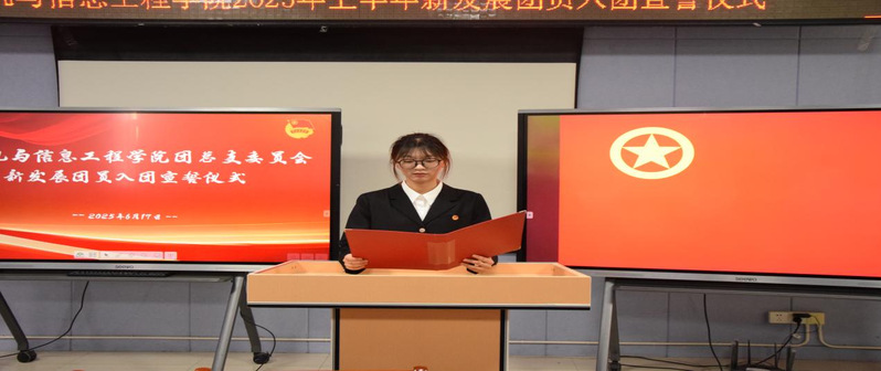 为夯实共青团组织建设,强化青年团员的使命感与责任感,6月17日中午,计算机与信息工程学院在行知楼601举行2025年上半年新发展团员入团宣誓仪式。学院党总支书记王莉娟、党总支副书记曾甜、团总支负责人李顺顺、全体辅导员、新发展团员及所属团支部团支书共同见证这一庄严时刻,仪式由李顺顺主持。