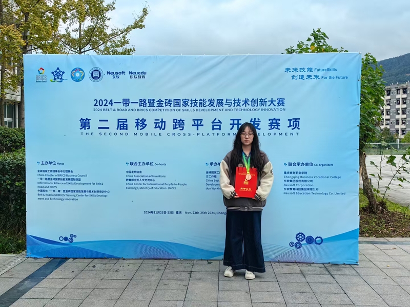 从课堂到赛场,从理论到实践,周彤同学始终以务实进取的态度砥砺前行。她坚定地表示:“作为新时代大学生,既要脚踏实地锤炼本领,也要心怀家国勇担使命。”在代码的世界里,这位年轻学子正以持之以恒的奋斗姿态,朝着高素质技术人才的目标稳步迈进,在青春的征途上,绽放出属于自己的璀璨光芒。(一审/张小翠 二审/胡桃英 三审/杜丹)