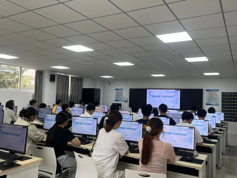 报告伊始,范文斌校友用通俗易懂的语言为学生们科普了大模型的基本概念、发展历程以及核心技术原理,让原本抽象复杂的技术知识变得生动易懂。他通过列举大模型在我们生活中的实际应用案例,向学生们展现了大模型技术的巨大潜力和广阔前景。同时,他也客观分析了当前大模型发展面临的技术挑战、伦理风险等问题,引导学生们以辩证的眼光看待人工智能技术的发展。