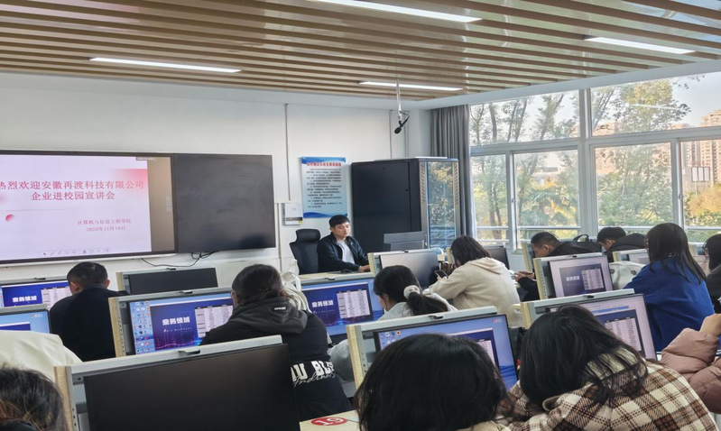 为深化校企合作、拓宽毕业生就业渠道,2025年11月19日下午,计算机与信息工程学院特别邀请安徽省马鞍山市高新技术企业安徽再渡科技有限公司在行知楼209教室举办专场宣讲会。计算机与信息工程学院2026届毕业生代表参加本次宣讲会。