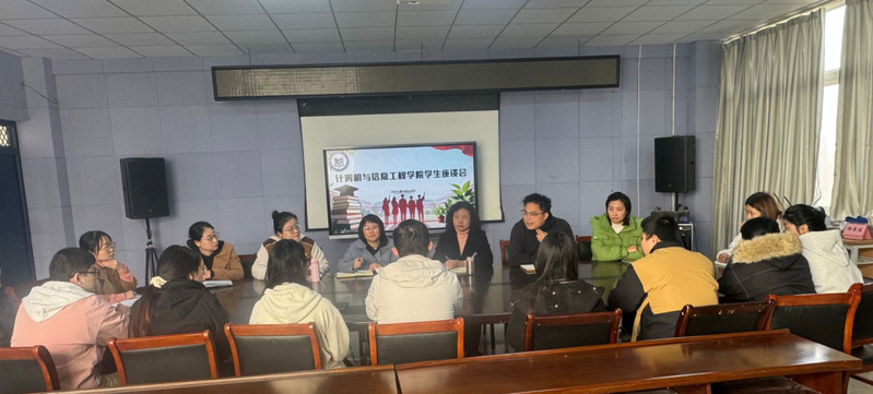 为全面了解本学期教学运行状况,听取师生对教学管理、专业建设及升本准备工作的意见建议,11月26日至28日,计算机与信息工程学院成功组织召开系列期中师生座谈会。学院党总支书记王莉娟、副院长杜丹、党总支副书记曾甜及各教研室主任、副主任、学院实训室管理人员、教师代表、学生代表等分批参加了座谈。